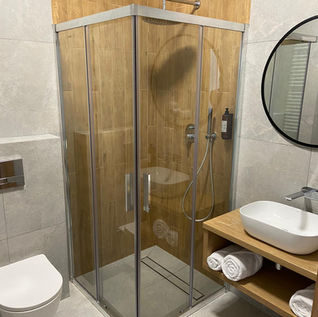 Nowoczesne łazienki – wyposażone w estetyczną armaturę, komplet miękkich ręczników i kosmetyki hotelowe.